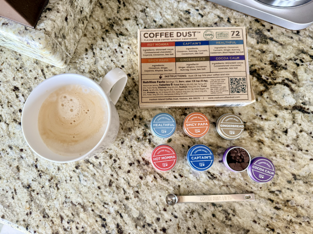Vashon Island Coffee Dust is all-natural goodness that you can sprinkle into your morning coffee, yogurt, smoothie, or oatmeal.