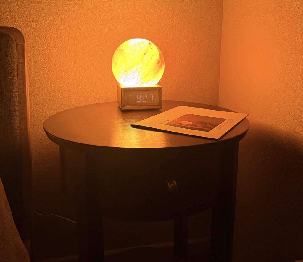 Besides waking up without an abrupt loud noise (I always wake up a few minutes after the light comes on), the clock is made of Himalayan Salt, which some people believe has health benefits such as improved respiratory health, a better mood, and better sleep. While the research isn’t strong on the health benefits, it is beautiful, and it just makes me feel happy.